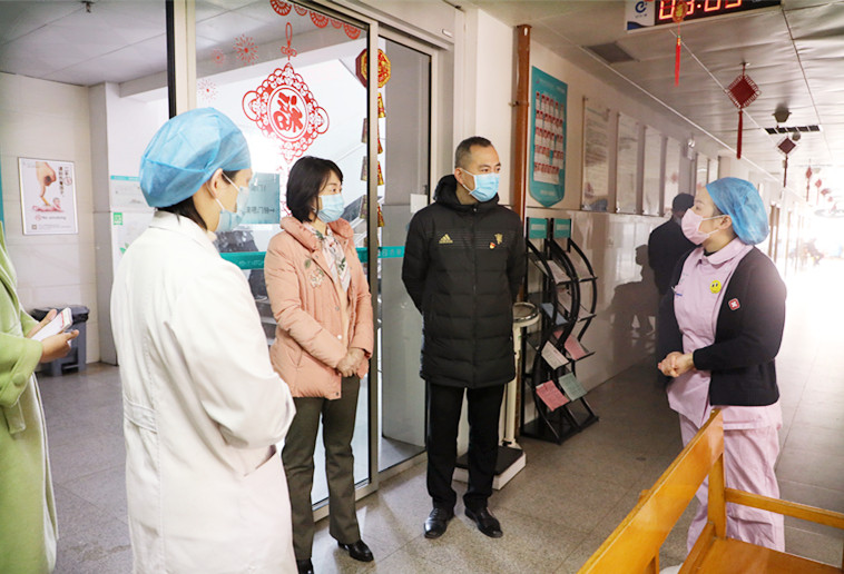 “新年好!这个年大家辛苦了。”丁乐书记、陈友佳院长首先来到儿外科,亲切慰问了儿外科值班的医务人员,叮嘱非急诊手术患儿尽量延迟收入院,减少人员聚集。他们来到产房门口,询问了近几日的分娩情况,要求产科医务人员做好住院病人人员陪护和出入管理,强调住院患者原则上配一名家属陪护,且相对固定不随意调换,医务人员、患者、家属及陪护人员都要做好个人防护,减少与其他病室人员的接触,尽可能谢绝其他人员来院探访,防止交叉感染。