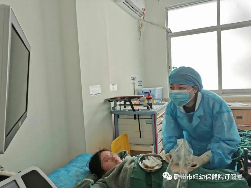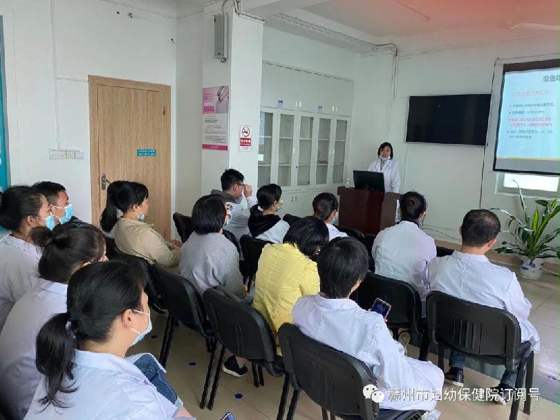 图为产前诊断中心副主任医师、医学博士潘敏为我院医务人员授课及为孕妇行羊膜腔穿刺+灌注术