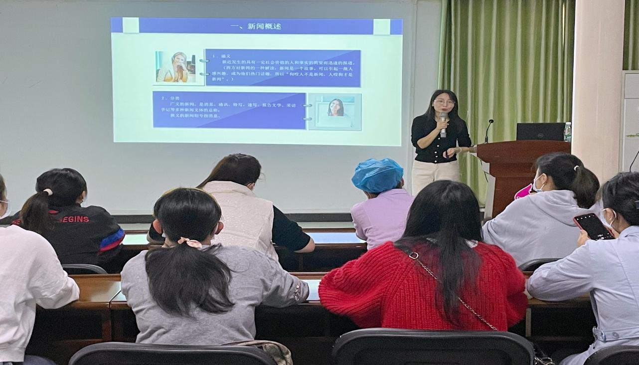 为加强临床新闻宣传工作,切实提高护理宣传通讯员的新闻写作水平和业务能力,2022年4月22日下午,我院护理部开展了新闻宣传培训,培训邀请了宣传科副科长周小梅授课,全院临床各科室护理通讯员到场听课。