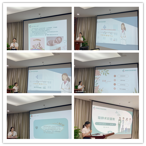 比赛中,6名选手结合临床实际和自己所在岗位专业特点,以辅助生殖助孕周期中的重点环节和流程为主线,从患者初诊到怀孕随访,围绕检查、治疗、饮食、运动、健康生活方式、手术配合、术前术后指导等,用图文并茂的方式和通俗易懂的语言,向大家清晰的展示人类辅助生殖技术助孕的知识和内容、流程、注意事项。宣教内容科学性、实用,讲解深入浅出、通俗易懂。通过激烈的决逐和现场评判打分,最终刘姗姗《胚胎移植后注意事项》获得一等奖,肖天亮《常见问题解答》获得二等奖,刘燕华《低分子肝素注射注意事项》获得三等奖。
