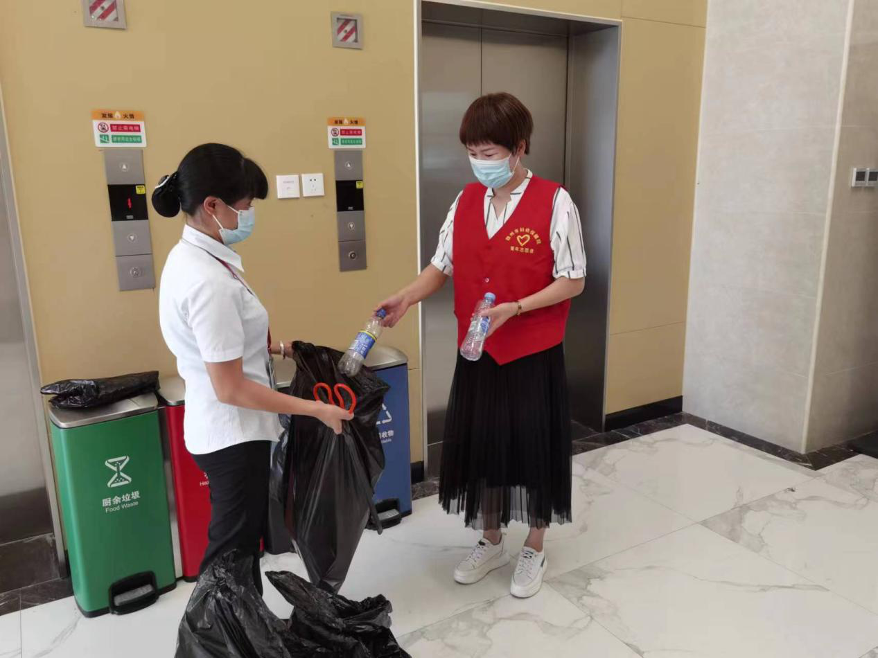 活动安排志愿者分6组在院区各科室全覆盖,为职工、患者及家属讲解限塑减塑及生活垃圾分类知识宣传资料,对限塑管理及生活垃圾分类答疑解惑,受众达百余人。现场指导民众进行生活垃圾分类,回收废旧塑料制品,并在倡议书签名。本次活动激发科室节能专管对环保的满腔热忱,体现了党员在节能及公益事业上的先锋模范作用,提升干部职工及市民节能环保意识,活动倡导全员“减少塑料污染,促进生活垃圾分类,资源再回收”的文明生活方式,在生活中尽量使用环保制品,从身边做起、从点滴做起,成为生态文明的传播者、实践者、绿色生态的维护者,维护我们的美丽生活环境。(丁明娥 刘福钟)