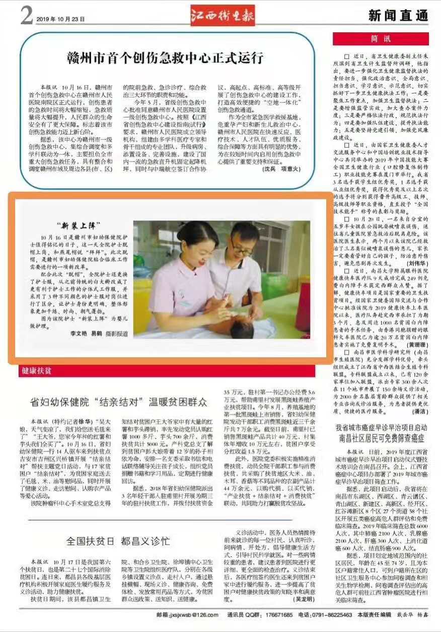 【江西卫生报】10月23日刊发我院“新装上阵”图片新闻