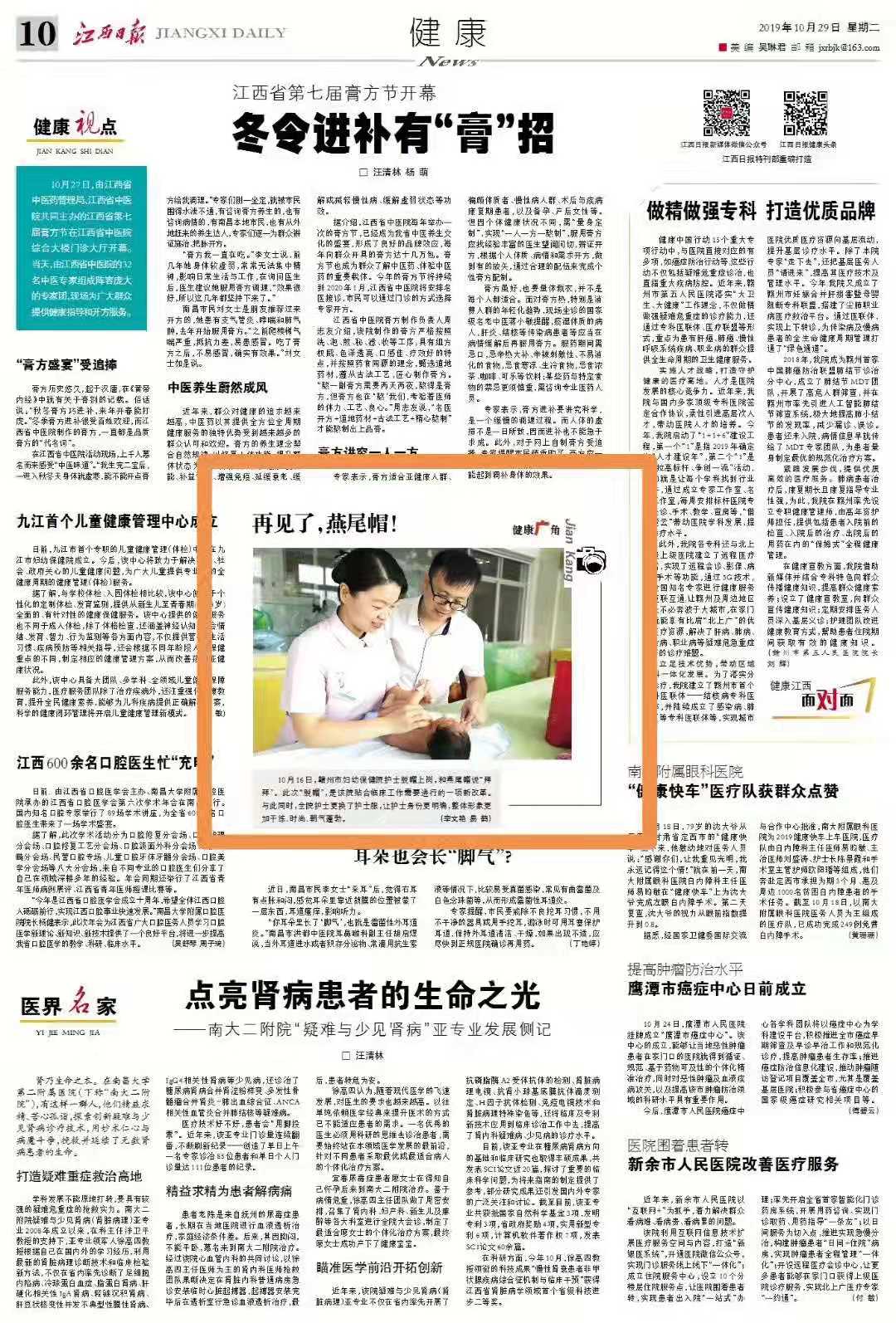 【江西日报】10月29日刊发我院“再见了,燕尾帽”图片新闻