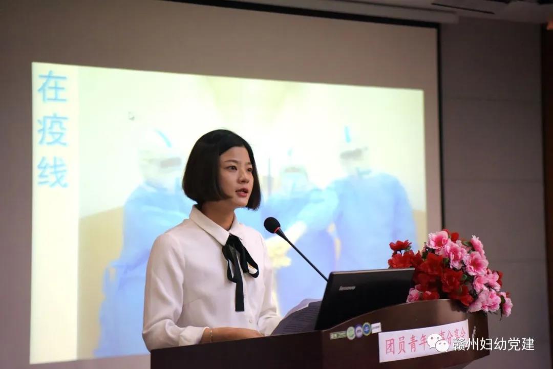 4月30日,赣州市卫生健康委组织委机关和市直医疗卫生单位近百名团员青年,在赣州市急救中心会议室举行“情系健康、凝心抗疫”团员青年英雄故事分享会。我院新生儿科主管护师杨莉作为分享者之一,走到台前,分享她在随州的战“疫”故事。