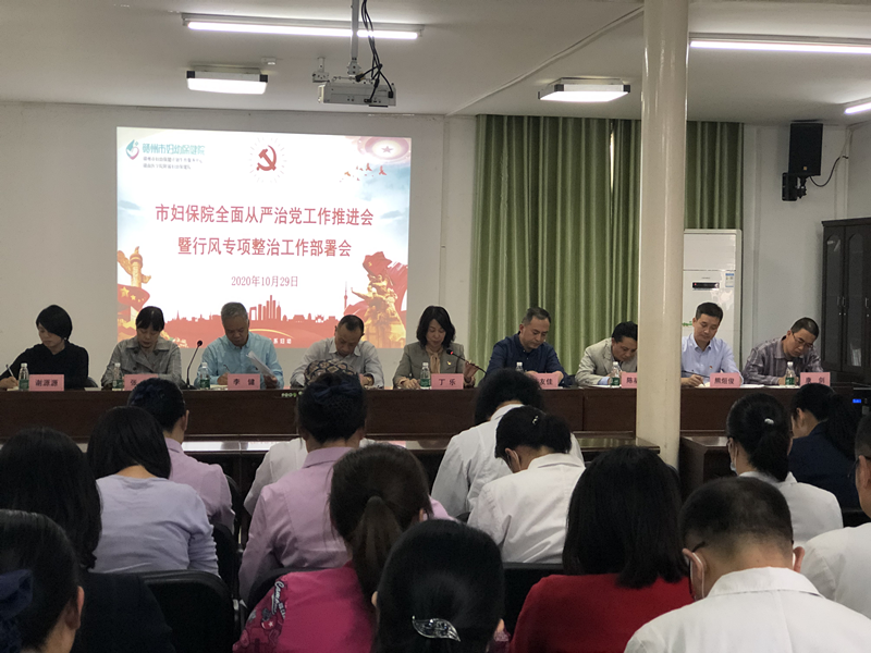 本站讯 万海萍报道:为贯彻落实市委、市卫健委学习习近平总书记关于全面从严治党重要论述专题读书班精神及全市卫生健康系统行风专项整治工作要求,推动全面从严治党取得新成效,10月29日下午,我院在院保健楼七楼党员活动室召开全面从严治党工作推进会暨行风专项整治工作动员部署会,院党委书记丁乐出席并讲话,院党委副书记、院长陈友佳主持会议。