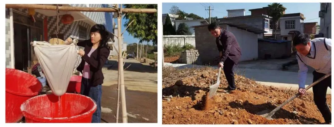 11月12日至13日,胡莉琴、陈福建带领扶贫干部来到湖下村,与贫困户同吃同住同劳动。期间,帮扶干部与贫困户拉起家常、倾心交流,了解他们的生活生产情况、积极为他们解决实际问题,此外,他们还来到田间地头和贫困户们一起劳作,开展人居环境整治。