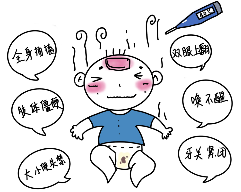 此疾病发病急,具有反复性,小儿患病后主要表现为大小便失禁、发绀、眼球斜视上翻、牙关紧闭、全身非随意性收缩等。小儿高热惊厥后神经系统处于过度兴奋状态,脑组织耗氧量增加,如果处理不及时,惊厥频繁发作,会导致脑组织受损,影响小儿发育。
