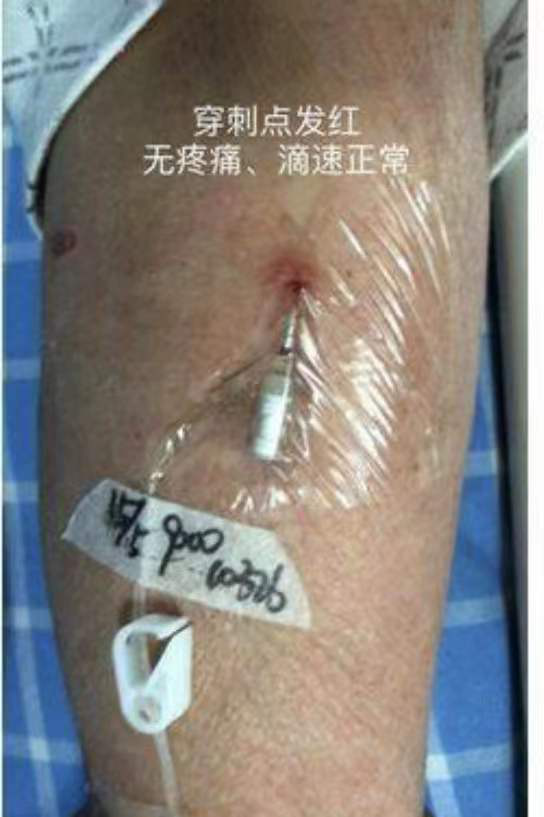 观察周围皮肤 及贴膜情况,注意观察留置针局部皮肤是否有红肿、渗液、出血