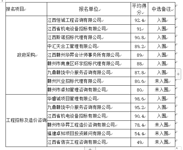 我院于2020年1月8日下午15:30时(北京时间)和2020年1月10日下午14:30时(北京时间),在313会议室分别对工程招标及造价咨询和政府采购两个代理服务单位库项目进行了遴选。经医院遴选委员会(小组)综合评分,现将入围候选人公布如下: