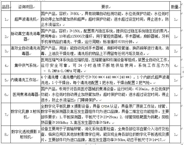 根据我院医疗工作需要,拟对下列医疗设备面向社会进行公开咨询,现将具体事宜公示如下: