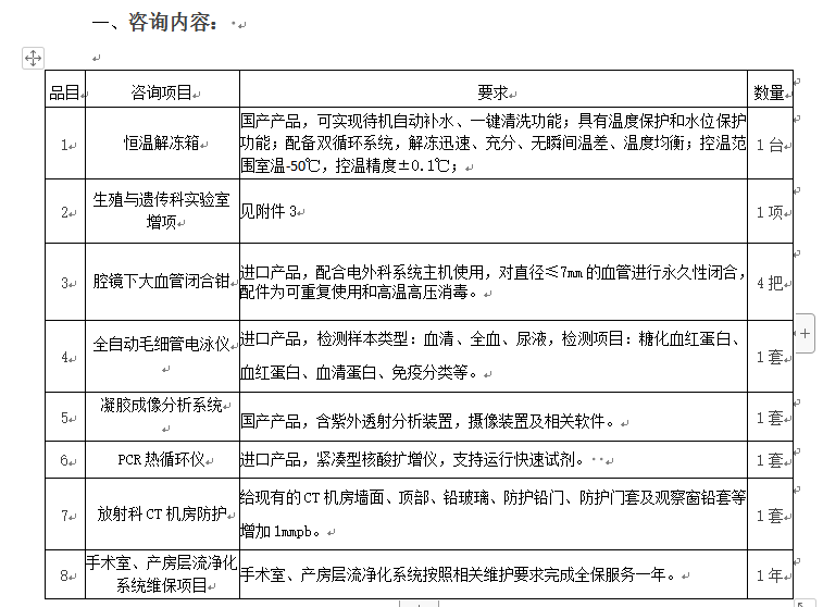 根据我院医疗工作需要,拟对下列医疗设备面向社会进行公开咨询,现将具体事宜公示如下: