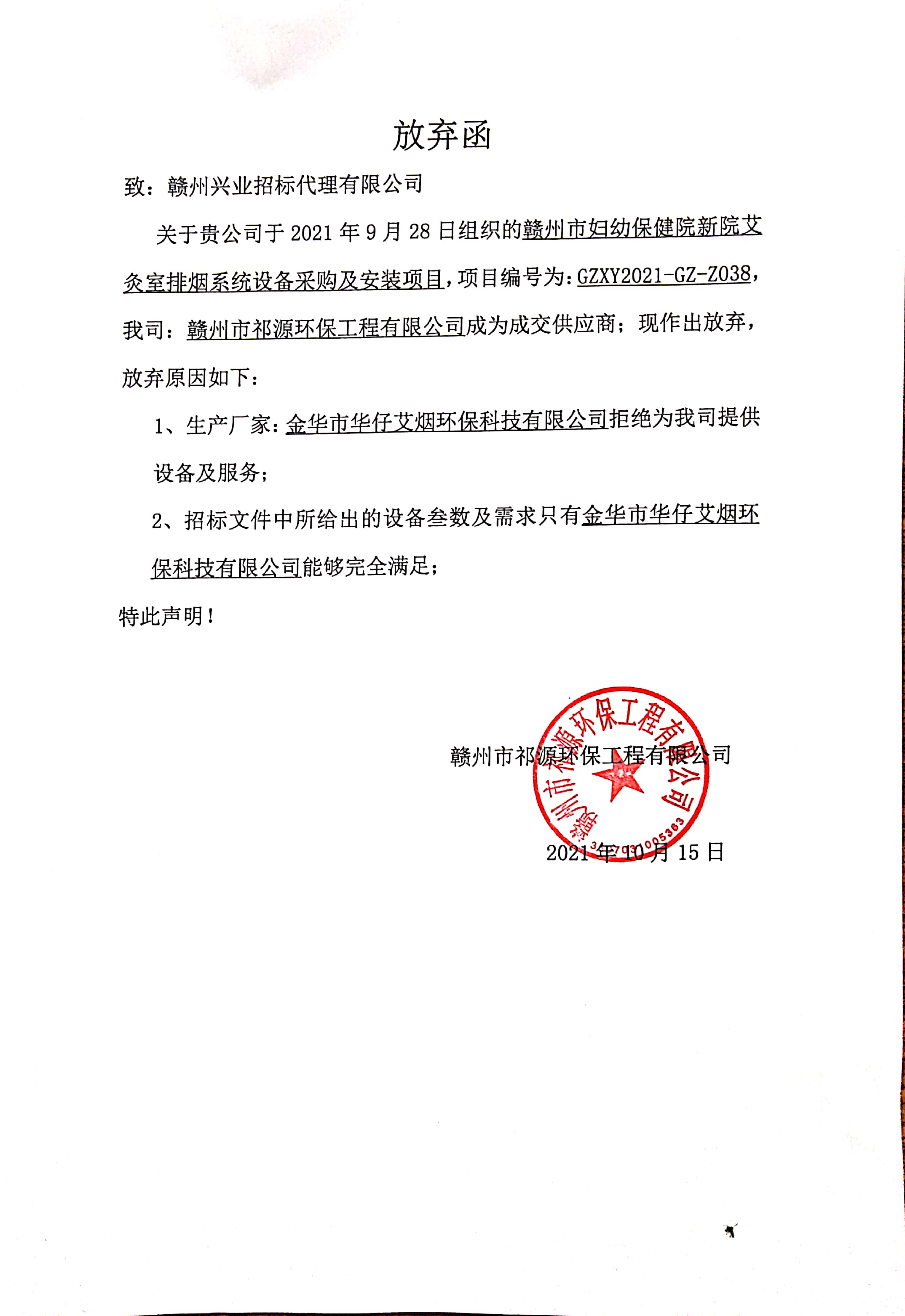 赣州兴业招标代理有限公司受赣州市妇幼保健院新院的委托,就其新院艾灸室排烟系统设备采购及安装项目(项目编号:GZXY2021-GZ-Z038)按照规定进行了竞争性谈判采购,采购活动于2021年9月28日15时00分(北京时间)在赣州兴业招标代理有限公司交易大厅举行,并于 2021年9月29日发布成交结果公示。