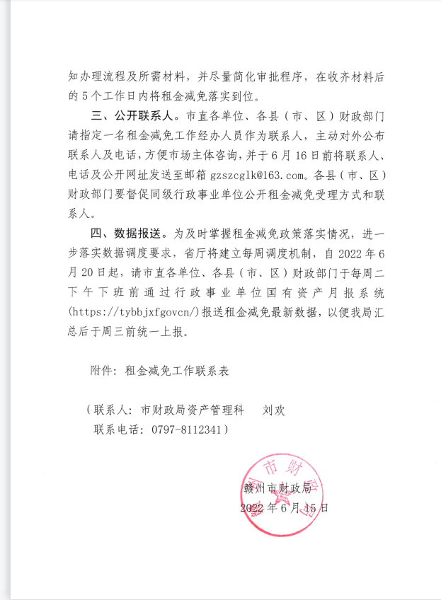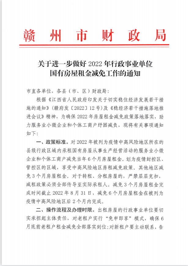 文件:赣州市财政局关于进一步做好2022年国有房屋租金减免工作的通知