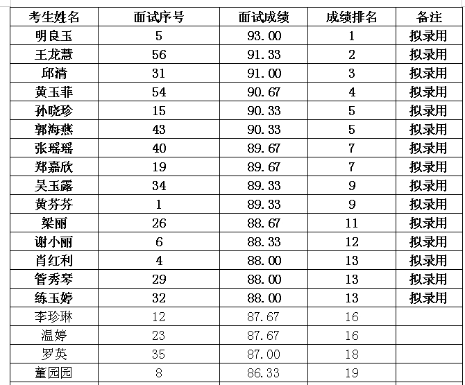已确定为拟录用对象放弃录用资格或中途辞职等原因造成的缺额,将在以上应聘人员中按考试成绩从高分到低分依次等额递补,递补名单将电话通知本人。
