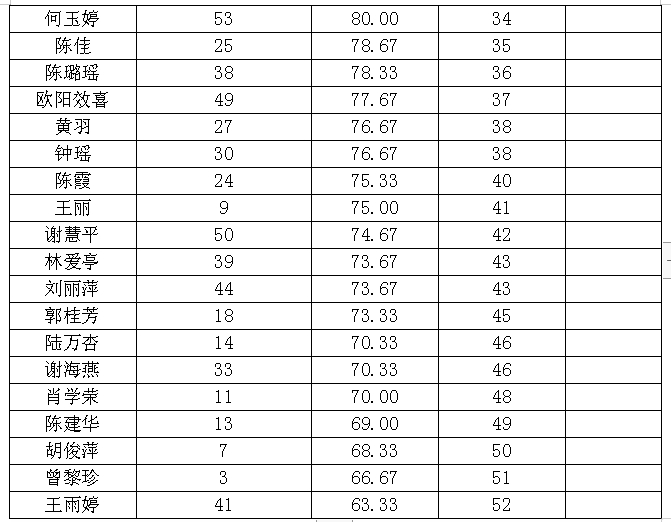 根据《赣州市妇幼保健院2020年第三批招募青年见习公告》规定,经过报名、资格审查、面试等环节,现将护士助理岗位应聘人员成绩及拟录用名单公告如下: