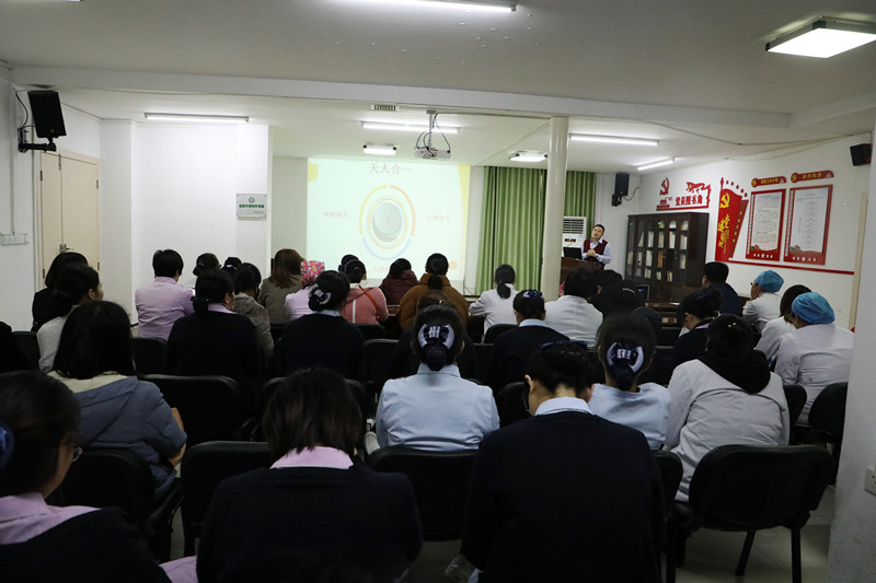 讲座中,金教授旁征博引、围绕当今医务人员的执业环境和心理压力,通过讲案例、剖自我、谈理论、提问题等方式,引导员工正确认识压力、积极自我减压。金教授还现场传授了应对压力的方式及心理调节的具体办法,引导大家进行正确的自我心理疏导。金教授的讲座亲切而富有感染力,风趣幽默的讲授方式更是让现场时不时发出阵阵笑声。