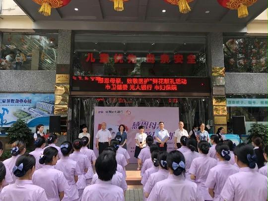 5月的赣南生机盎然、万木葱茏。在母亲节、“5.12”国际护士节即将来临之际,5月9日上午,由赣州市卫健委、光大银行赣州分行主办,我院承办的“感恩母亲、致敬医护”鲜花献礼活动在我院门诊大厅如期举行。赣州市卫生健康委副调研员方惠清,光大银行赣州分行党委书记、行长王海,我院党委书记丁乐、院长陈友佳,赣州市卫健委妇幼健康科科长饶兰云、光大银行赣州分行副行长张昭,我院副院长胡莉琴出席活动并为援五院、援鄂女性医护人员送花,我院相关科室负责人及抗疫医护代表参加活动。