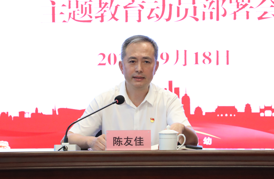 陈友佳要求,一要提高政治站位,强化政治担当,深刻认识开展主题教育的重大意义。开展主题教育是淬炼党性、永葆初心的不二法宝,服务群众、担当使命的强力抓手,是自我革命、转变作风的重要途径,全体党员干部职工一定要提高政治站位,以高度的政治自觉性,认认真真、扎扎实实开展好这次主题教育;二要锚定目标任务,落实重点举措,扎实推进主题教育活动见行见效。坚持学深悟透,强化理论武装,坚持问题导向,大兴调查研究,坚持实干笃行,谋划医院发展,坚持刀刃向内,抓好整改落实,着力推动医院高质量发展取得新突破、新成效;三要加强组织协调,精心谋划部署,确保主题教育顺利开展圆满完成。要压实工作责任,强化监督指导,防止“走偏走样”,力戒形式主义、官僚主义,抓好宣传引导,为开展好主题教育营造良好舆论氛围,做好统筹兼顾,要把主题教育融入到贯彻中央和省、市委决策部署的具体实践之中,融入到当前医院改革发展的中心工作之中,让高质量的主题教育成果,转化为推动医院高质量发展的实际成效。