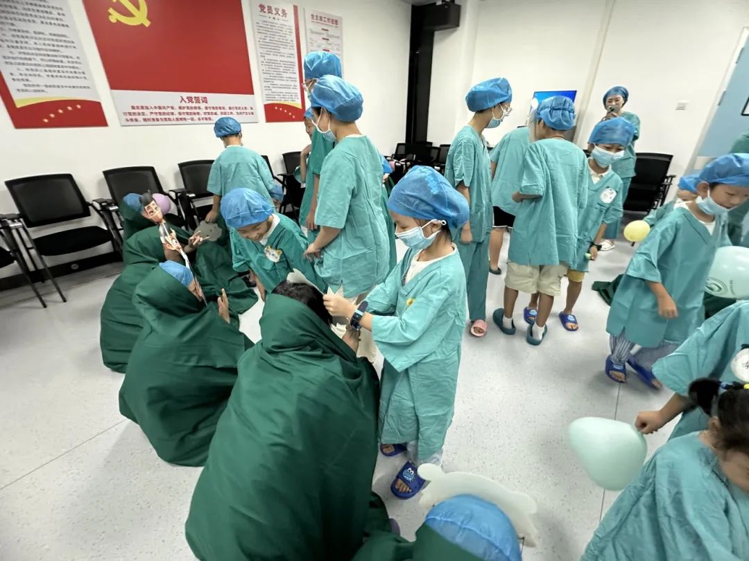 “妈妈,那个像小太阳一样的灯,为什么要开那么亮?”“手术台上的剪刀,是不是和家里的剪刀一样锋利?”“做手术的时候,也会像平时睡觉一样舒服吗?.....在许多人的心中,手术室总蒙着一层神秘的面纱,尤其是对于充满求知欲和好奇心的孩子们而言。为了破解这份神秘感,增进医护人员子女对父母工作的理解,同时播撒下医学梦想的种子,8月10日,我院麻醉科手术室利用节假日时间,举办了一场“童心探医路”手术室亲子探秘日活动。活动组织医护人员子女走进这方“生命战场”,沉浸式感受父母在无影灯下的工作日常。