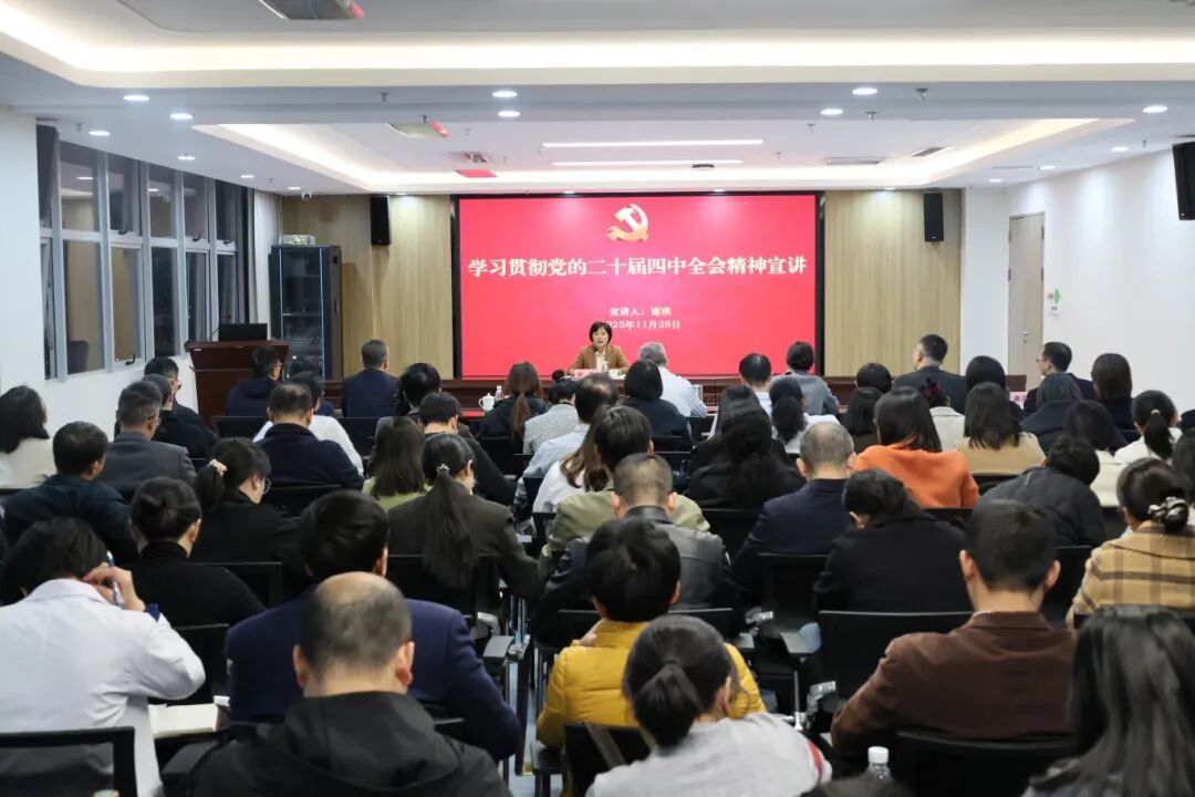 11月28日,赣州市卫健委二级调研员谢瑛在我院宣讲党的二十届四中全会精神。院党委书记陈友佳主持会议,领导班子成员、全体中层干部以及第十党支部全体党员参加会议。